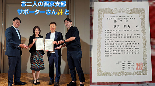 半年間の京都同友会実践塾が 終わり、今宵は五つ星ホテル✨ 「ハイアットリージェンシー京都」にて「修了式」でした。 矢野 雅史 代表理事から 「修了証」を頂いた時は〜 8年前の兵庫同友会成文化セミナーを思い出し…ちょっと感傷的に… 細々とでも!諦めず〜何とか! 会社存続出来て良かったと♪ 「1冊目の理念をブラッシュ🆙した事で自社の存在価値や10年ビジョンが明確に」 「サポーターさんの有難みをしみじみと感じ、何らかのカタチで必ず"恩送り"はしたいと」 塾生3分間スピーチの時に、 理念の後に心を込めて〜 小林伸司 副会場長さんはじめ、 3人のサポーターさん方に 感謝の気持ちを申し上げるはずが!タイムオーバー💦 これには凹みました😰 曲がりなりにも「研修講師」… お粗末過ぎて情けなく…💧 「3分間スピーチ」練習しなければ!心から反省です💧 本日、残念ながら諸事情で 出席叶わなかったグループのお二人とは〜後日! 東山の一等地✨円山公園内の老舗 名井聖介 さんのお店✨ 京料理・鍋物 いふじ さんで 盛大な✨打ち上げ🍻予定♪ 楽しみです✌