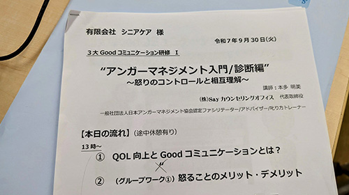 先日の事務所オープン企画☆第3弾にお越し頂きました 遺品整理株式会社リリーフ 赤澤代表取締役社長と 阪神特殊自動車 株式会社 足立代表取締役のお二人が 発起人になって下さり〜 あっという間に(ホントに意思決定がお早いお二人✨) 「3大Goodコミュニケーション」 3研修セットの日時決定✨ 杉原サポート株式会社の 杉原代表取締役と 株式会社マリーコーポレーション の川崎代表取締役もご賛同下さり、本日4社合同のキックオフ 「アンガーマネジメント入門&診断編」無事終了いたしました🙇♀ 弊社にとっても初🔰の4社合同研修,皆さんにとっても初🔰の他社さんとの合同研修(しかもメンタル研修)でしたので… 緊張と多少の不安もありましたが… 4社の皆様✨流石です✨ 各社のテーブルは大盛りあがり♪ いつものごとく「笑い声と笑顔」 たくさん頂戴いたしました♪ 来月は②「正しい叱り方」研修。 1ヶ月毎に学んで頂く事は 「研修効果抜群✨」であるのは 間違いなし❗️なのですが〜 多忙な中、4社共にスケジューリングして下さった事にあらためて〜! 尊敬と感謝の気持ちでいっぱいです。