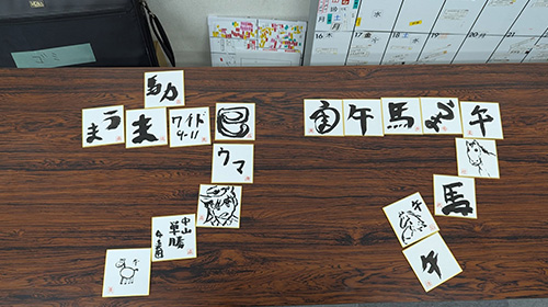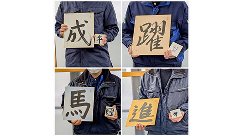 本日は5年連続♪毎年1月に ご依頼頂いております✨ 有限会社ニシムラサービス 様へ 伺いました。 社員さんも増えられましたので 今年もアシスタント同伴で 「今年のMy漢字」研修をさせて 頂きました♪ こちらの企業様も外国籍の社員さんがお二人いらっしゃいましたが、 🔰とは思えないくらい完成度の 高い作品を仕上げられました👏 また、研修時間を多めに頂いて おりましたので〜 初の試み♪通常の「大色紙」➕ 「豆色紙」に「干支・午」を 各々自由に書いて頂き、 「うま」で展示してみました♪ 毎年継続して頂いている企業様は、 「年に1回しか筆を持たない」にも 関わらず!なぜか?上達されています。 そして年々「1字への想い」の スピーチが素晴らしく深い内容の 方が増えてこられ〜✨ 拝聴して感動する事も各社共通です。