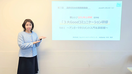 今春から新しくご縁を頂いた 介護事業と神戸日語学院を経営されている尼崎市内の企業様の 「3大Goodコミュニケーション研修」無事3回終える事が出来ました♪ キックオフは〜 9月の「アンガーマネジメント研修」 そして何と!本日は終日✨ 午前「正しい叱り方〜部下のやる気を損なわない言葉〜」 午後「褒め言葉レッスン〜自己肯定感UP法〜」 対象は日本語講師の先生方と事務方の皆様でしたが、 授業のないオフの日に、 非常勤講師の先生方まで進んで参加して頂きました✨ とにかく皆さん熱心な方々ばかりで〜✨ グループワークは毎回和気あいあい♪盛り上がり過ぎて⁉️「ストップ」かけずらかったくらいです😅 質問もその都度して頂き、 通常の2倍の長丁場にも関わらず! 「2研修あっという間でした。 ロープレやゲームもっとしたかった❣️」など等… 大変嬉しいご感想(アンケート)を 頂きました。 今年最後の研修2本でしたが、 講師自身も楽しく過ごさせて頂き♪記憶に残る日になりました🙇♀