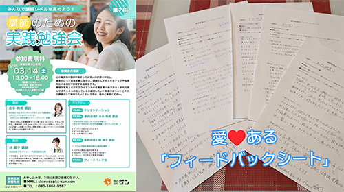 本日は昨年に引続き〜2回目の 株式会社サン様主催 ”講師レベルを高めるための” 貴重な勉強会に参加させて頂きました♪ そし今回は〜なんと登壇💦 受講者さんは現役プロ講師の方々✨緊張感MAXの中💦 弊社の看板研修「3大Goodコミュニケーション研修Ⅰ」アンガーマネジメント入門編をさせて頂きました♪ その後は、プロの厳しくも的確な フィードバック会✨ 普段、受講者さんにお願いしているアンケートとはまた全く違う 「プロの視点」から指摘された事は ”目からウロコ”です。 愛のあるフィードバックシートは、 D会成文化セミナーで頂いたものに 続く宝物🎁になりそうです。 また、本日から精進あるのみ! スキルアップ目指します💪