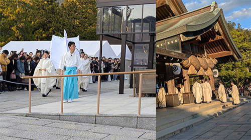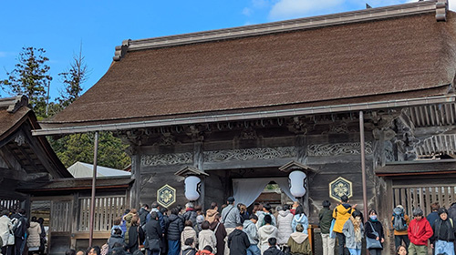 先ほど、出雲大社⛩️拝殿前で 全国の八百万(やおよろず)の神様が お帰りになる儀式に立ち会えました 神在祭最終日の16時ぴったりに 沢山の神官さん達が拝殿に集まられ その後「白い布」に覆われた神様をお見送りされました。 幸運にも最前列おりましたので〜 目の前を通り過ぎられた時は、 感動で自然にお辞儀を…🙏 朝から晴天には恵まれたのですが、 待ち時間がまぁまぁ長く、 靴のカイロが恋しくなるほど、 つま先の感覚が〜❄😩❄ 初日、「稲佐の浜」で神様を迎える 『神迎祭』も然り〜防寒対策は必須です! 一時、1人の購入数が制限されていた『1週間の限定お札』でしたが 今回は何枚でも可✨ 昨年同様、お世話になっている方々に「おすそ分け」させて頂いても まだ余るかも〜❓️ ご希望の方♪お声がけ下さいませ。